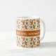 Charming orange and white cats in naive art style decorate this fun coffee mug. Coffee, cats, and cozy mornings. Text can be changed. Image was AI-generated by IveyCottage.