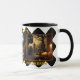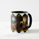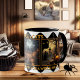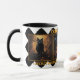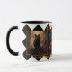 Personalised photo mug featuring 3 of your own photos (or spooky Halloween scenes), framed by a classic black and white design. With your custom funny (or other) texts. Great as a gift for a Halloween or cat lover.