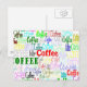 Keep in touch with this brightly coloured postcard with the word *Coffee* displayed in different fonts, and colours. Perfect for the coffee lover!