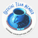Seal the bag of goodies or invitation with a coffee lovers seal. The design features a close-up photo of a coffee filled blue cup and saucer with coffee beans. The blue text above the photograph reads "Official Team Member". The black text below the cup and saucer photograph reads "Coffee Consumption Squad". Fill in the template fields to change the text, remove text or click customise to select a typeface style, size, and colour you like.