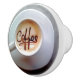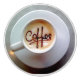 A coffee cup and saucer filled with foamy latte, and the word coffee drizzeled in chocolate. A nice ceramic knob for the kitchen and for any coffee lover.