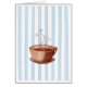 Illustration of a soothing, steaming cup of coffee set against a blue and white striped background. Perfect to use as an invitation to brunch, coffee or just to get together with caffeine loving friends! Also matches the: