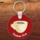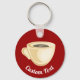 Beige cup of coffee. Custom background color. Custom text on both sides.