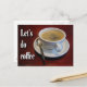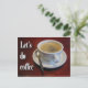 Coffee cup on wooden table postcard