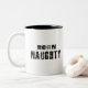 Coffee mug with Born Naughty in black destressed letters design