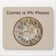 This unique coffee cup artwork features every imaginable type of coffee drink, including lattes and espresso cups. The words "Coffee is My Friend" are written above images of every imaginable type of coffee drink, including lattes and espresso cups. The message is completely editable to suit your taste.