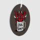 A red three-eyed demon with horns and outstretched arms emerges energetically from a steaming mug labelled Coffee Demon. Coffee beans surround the creature adding to the playful quirky theme. The demon's hands are making the heavy metal devil horns hand gesture. Great gift for coffee lovers. Tags: devil, demon, coffee, evil, caffeine, latte, mocha, espresso, cappuccino, arabica, americano, roast, monster, mug, cup, horns, spooky, playful, beans, energy, quirky, devil horns, cartoon, cute, drip, stain
