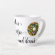 "All I need is coffee and doughnuts" in fancy lady love script. This typographic design is paired with 2 chocolate doughnuts with rainbow sprinkles.