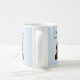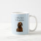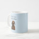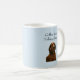Coffee First. Talking Later. Blue mug with a grumpy dachshund that represents all of us before we've had our coffee.