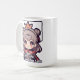Chibi villain girl with cape and crown holding coffee, evil cute smile