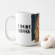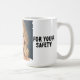 A Personalised picture on a coffee mug with the saying : I drink coffee for your safety. It is a funny saying to add any picture to.