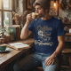 Fuel your daydreams with this witty "Coffee Fuel for the Daydreamers" t-shirt, designed for those who run on caffeine and creativity. The playful script font in warm beige tones features a steaming coffee cup integrated with a gear symbol, evoking the perfect blend of energy and imagination. Printed on a classic navy blue background, this tee is a must-have for coffee enthusiasts, writers, artists, or anyone who needs that morning brew to spark their thoughts.