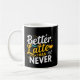 Start your day with humour and style! This bold typographic design features the quote "better latte than never ” on a sleek black background. Perfect for coffee lovers, it blends fun vibes with modern style. A funny coffee gifted idea and a coffeeful mug funny must-have!