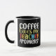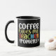 Funny coffee design for teachers who love and need their coffee on teacher bags, notebooks, mugs, pillows, T-shirts, buttons, and more. Text reads Coffee Givers Me Teacher Powers!