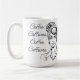 Add some humour to your morning with this funny coffee mug. A funny sarcastic retro lady and quote, "Coffee, Caffeine,"