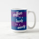 Fun words while enjoying a great cup of java. Deep blue and purple stripes. This would make a super special gift!