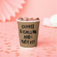 A whimsical saying for coffee lovers. This design is perfect for any occasion, any time of the year. A fun type font reads "COFFEE IS CALLING AND I MUST GO! You can customise the background colour.