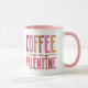 If you aren't really a fan of Valentine's Day, this may be the mug for you! Pink, brown, and gold stylised text says "COFFEE is my VALENTINE". The text is repeated twice on the mug. Cute, and will definitely bring a smile!