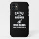 Coffee Is The Answer Who Cares What The Question Is. This funny coffee accessory is a great Christmas, birthday, Mother’s Day or Father’s Day coffee gift for a coffee lover. Perfect for coffee drinkers & coffee addicts. Coffee is the answer to everything! Do you love to drink coffee, cappuccino, lattes, mocha or espresso in the morning? Are you addicted to coffee & caffeine? If you can’t go a day without coffee, then this design is for you! Features a graphic of a cup of hot coffee.