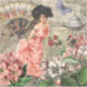 A beautiful Victorian woman painting in pink with flowers and a fan - this whimsical and wonderful fairy tale collage has with flowers, a butterfly, a fan, coffee, and lots of gorgeous colour!