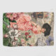 A beautiful Victorian woman painting in pink with flowers and a fan - this whimsical and wonderful fairy tale collage has with flowers, a butterfly, a fan, coffee, and lots of gorgeous colour!