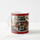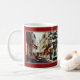 Illustrated mug featuring a French city scene in retro style with coffee shops and bakeries. A feel good coffee mug for any coffee lover.