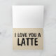 YOU HAD ME AT COFFEE. GREETING CARD. INSIDE READS: I LOVE YOU A LATTE.