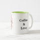 The Coffee & Love Two-Tone Coffee Mug is designed to add charm to every sip — featuring a stylish dual-colour finish, a smooth ceramic body, and a heart-warming message that makes it perfect for gifting or daily use.
