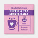 Designed with space for a name, it features the phrases “Coffee & Tea Served Daily” and “Open 24 Hours” — perfect for coffee lovers, tea drinkers, and cozy home vibes.