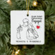 A line art drawing of a couple drinking coffee as they celebrate their first Christmas engaged, both holding a mug as an ornament with a red heart hangs under the phrase, “Our First Christmas Engaged.” The year is written as ’25 on a mug. Personalisation is available for the names, and a sweet note can be included on the back inside the text box as the red heart ornament makes an appearance on the back of the ornament. It is ideal for a couple that shares a love for each other and coffee.
