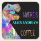 Funny 'Where's alexandra’s Coffee' quote with a funny running Tyrannosaurus Rex that is definitely looking for coffee. An ideal gift for the caffeine addict in your life, just add a name to the template to personalise this fun design. Colourful coffee desperate T Rex design, ideal for your dinosaur coffee loving friends. Funky psychedelic prehistoric dinosaur illustration in green, purple, blue, aqua and yellow. Prehistoric, jurassic era, original artwork by artist Catherine Sweetman.