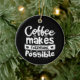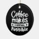 Coffee themed ceramic ornament with white text reads Coffee Makes Everything Possible! If you are a coffee addict or just someone who can't start the day without a cup of coffee you'll love this coffee saying ornament!