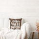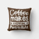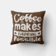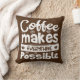 Cool white text with some coffee beans on a throw pillow perfect for those who love and need coffee in their life! Saying reads Coffee Makes Everything Possible!