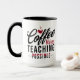 This is the perfect mug for a teacher who also love drinking coffee. It is a fun design in black and red with the words "Coffee Makes Teaching Possible" and coffee cup. This would make a great gift for teacher appreciation, back to school, for a teacher's birthday, end of year gift or Christmas gift. The mug can also be personalised by changing the name which appears on the front of the mug.