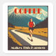 You run over high mountains and do ultra running races because of coffee and coffee alone. This great design shows a runner in the mountains in the style of a retro vintage travel poster.
