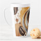 The art is of a cup of java with lots of stains on the background and on the saucer along with coffee beans, the artwork is done in watercolors. The mug will add a extra jolt to the mornings when something hot is need for the week ahead.