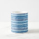 Coffee mug is shown in a blue and white colour striped print.