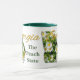 Though sometimes called the "Empire State of the South", Georgia's official nickname is "The Peach State". No wonder. Georgia is the Number One producer of peanuts, pecans and peaches. The Cherokee Rose, lovely and fragrant, has a sad tale associated with it. A tragic event, in 1838, in which thousands of Cherokee were forced out of Georgia and other lands east of the Mississippi River. The path taken by Native Americans has been called the “Trail of Tears” because of the tears shed by Cherokee women on the journey and because of the number of Native Americans that died along the way. Chiefs, they say, prayed for a sign to give their women hope. It is said that wherever a tear dropped, a Cherokee Rose bloomed. The flowers continue to bloom along the path today. Georgia became the 4th state in 1788. As one of our "older" states, it's surprising that the state song, "Georgia On My Mind" was adopted in 1979 and the official state flag only dates back to 2003. For all it's rich history, good and bad, Georgia is home to one of the most contemporary cities in the country: Atlanta. Atlanta is also the birthplace of Coca-Cola. This delightful design pays homage to this beautiful state. The state outline is filled with the lovely white blooms of the Cherokee Rose. This is layered with the yellow gold "Georgia" and anchored with a pine green hue "The Peach State". This gorgeous coffee mug is a terrific option for state memorabilia collectors or for anyone wanting to pay homage to our amazing 4th state. The original state outline is overlaid with the yellow gold "GEORGIA" and "The Peach State" is in the lower corner and beautifully coordinates with the handle and brim of this delightful cup.