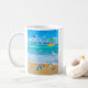 I like to buy and review my own work to ensure you get an outstanding product and I’m happy to give the Primary Colours Beach Football Mug 5 stars because it meets my expectations completely. Pleased with it I am. Zazzle mugs are well fabricated, microwave and dishwasher safe. And this yellow red and blue panoramic wraparound motif is sealed with a durable and sparkling Orca polished gloss glaze finish. It’ll never rub off! The size and energy of two jostling figures and a burly goal keeper fit the mug's circular shape well. There's momentum in the carousel effect as the two jostling figures repeat and move right around the mug and meet a burly goal keeper. Big sharp original images precisely drawn and delicately captured in blue and red with plenty of bright yellow! An ideal gift for anyone who plays ball! A fun gift for all beachball and football fans. A pair with the Retro Grey-Grain Beachball Player Mug. Available in two sizes and several styles including Black Ringer, Travelling, and Stern. Go have a peek!