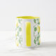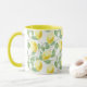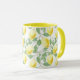 This ceramic coffee mug is shown in a two-tone colour of yellow with a cute summertime fruit of lemons print.