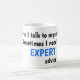 Coffee mug with funny saying. "Of course I talk to myself, sometimes I need expert advice". Give yourself a good laugh every time you use it! Good for the soul. Perfect humourous gift for him or her, gets you compliments galore!