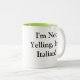 White coffee mug with green interior with Italian saying "I'm Not Yelling, I'm Italian"