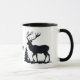 This ceramic coffee mug is shown with a art print of a elk with Yellowstone text.