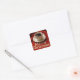 A steaming cup of black coffee rests on a white saucer against a red background, with the words "Merry Christmas" elegantly printed beneath