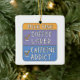 Had this made to remember two famley members who are both no longer with us at christmass as a hanging decration for the chritmass tree.. its white porcline or cramic but very well made with added photo on one side.. also has a lovley red bag to keep it in.. execlent printed text in bold and black stands out well aganst the blue background of the photo.