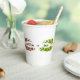 A clean and minimalist paper cup design featuring the phrase “coffee or tea” with lightly scattered coffee beans and fresh tea leaves. Perfect for cafés, events, parties, and everyday takeaway drinks. A modern and stylish choice for coffee and tea lovers.