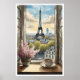 Beautiful original artwork / sketch work of a room view with Coffee overlooking Paris and the Eiffel Tower
