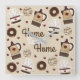 Cute illustrated steaming cup of coffee and matching coffee pot design decorated with hearts and doughnuts on "Home Sweet Home" wall clock.