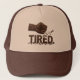 This bold and creative cap features a powerful fist made of roasted coffee beans, literally smashing the word "TIRED.