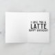 This card is great fun and good quality. I loved the humour inside and on the back. There is the opportunity to change the orientation of this card from landscape to portrait, which I did. It is relatively straightforward to amend the typeface to fit the new orientation. It was well packaged with no plastic. The printing on this card is excellent.